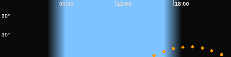 | Aufgang | 15:38 Uhr im Südosten (αAz = 126,9°) |