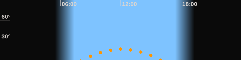 | Höchster Stand (Kulmination) | 12:05 Uhr (h = 16,5°) |