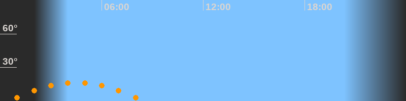 | Untergang | 08:30 Uhr im Südwesten (αAz = 233,1°) |