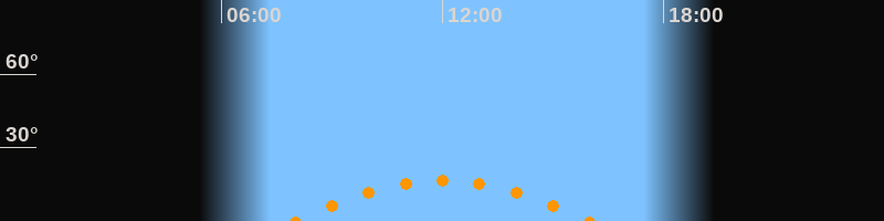 | Höchster Stand (Kulmination) | 12:00 Uhr (h = 16,5°) |