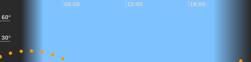 | Aufgang | 22:41 Uhr im Südosten (αAz = 126,9°) |