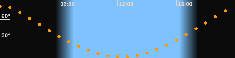 Höchster Stand (Kulmination)00:19 Uhr (h = 80,5°)