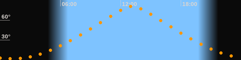 Höchster Stand (Kulmination)13:09 Uhr (h = 80,5°)