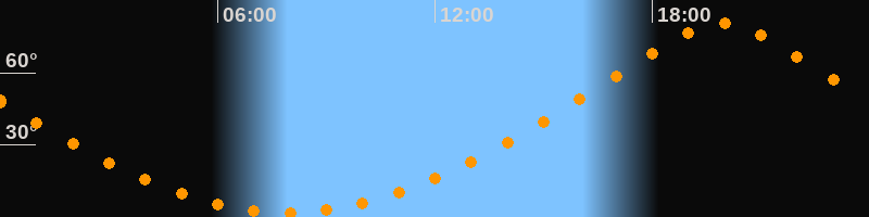 Höchster Stand (Kulmination)19:56 Uhr (h = 80,5°)
