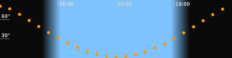 Höchster Stand (Kulmination)23:59 Uhr (h = 80,5°)