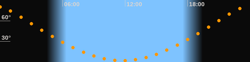 Höchster Stand (Kulmination)23:44 Uhr (h = 80,5°)