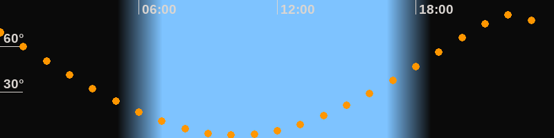 Höchster Stand (Kulmination)22:09 Uhr (h = 80,5°)