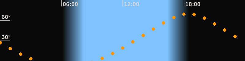 Höchster Stand (Kulmination)18:25 Uhr (h = 69,9°)