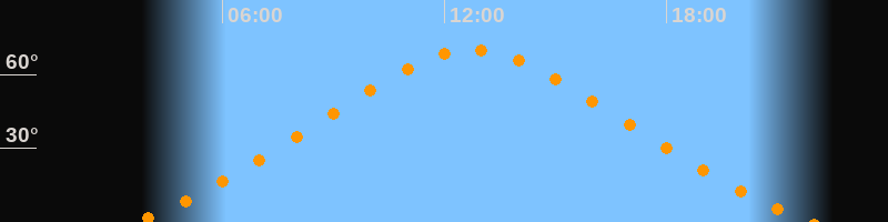 Höchster Stand (Kulmination)12:45 Uhr (h = 69,9°)