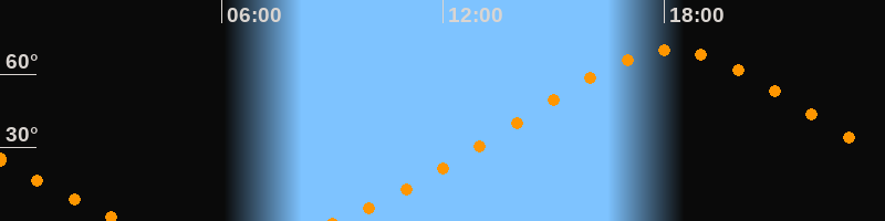 Höchster Stand (Kulmination)18:11 Uhr (h = 69,9°)
