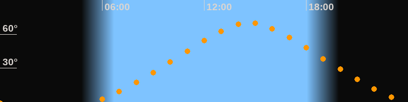 Höchster Stand (Kulmination)14:39 Uhr (h = 69,9°)