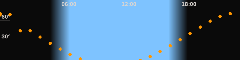 Höchster Stand (Kulmination)23:11 Uhr (h = 69,9°)