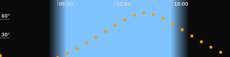 Höchster Stand (Kulmination)15:07 Uhr (h = 69,9°)