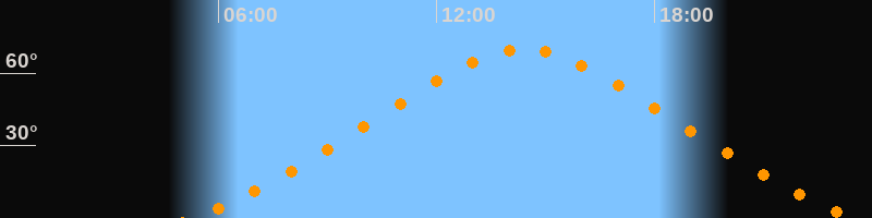 Höchster Stand (Kulmination)14:24 Uhr (h = 69,9°)