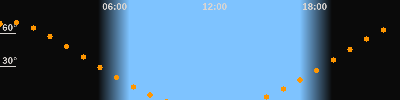 Höchster Stand (Kulmination)00:36 Uhr (h = 69,9°)