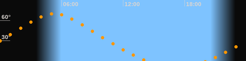 Höchster Stand (Kulmination)05:16 Uhr (h = 69,9°)
