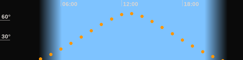 Höchster Stand (Kulmination)12:45 Uhr (h = 69,9°)
