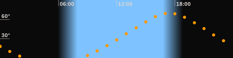 Höchster Stand (Kulmination)17:24 Uhr (h = 69,9°)
