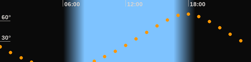 Höchster Stand (Kulmination)17:51 Uhr (h = 69,9°)
