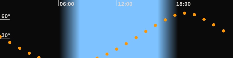 Höchster Stand (Kulmination)19:03 Uhr (h = 69,9°)