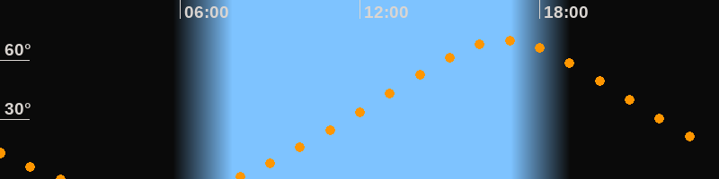 Höchster Stand (Kulmination)16:49 Uhr (h = 69,9°)