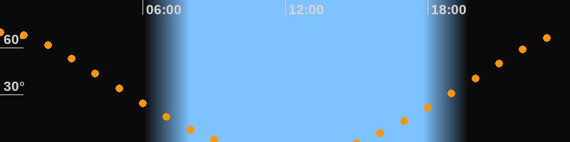 Höchster Stand (Kulmination)00:07 Uhr (h = 69,9°)