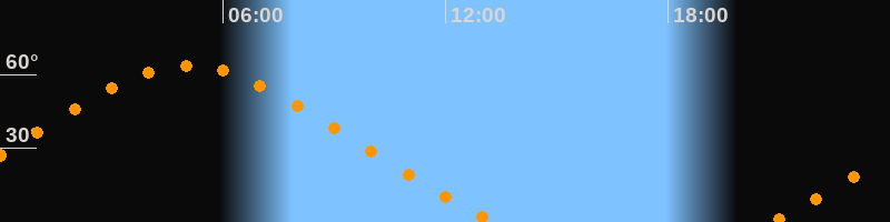 Höchster Stand (Kulmination)05:05 Uhr (h = 63,6°)