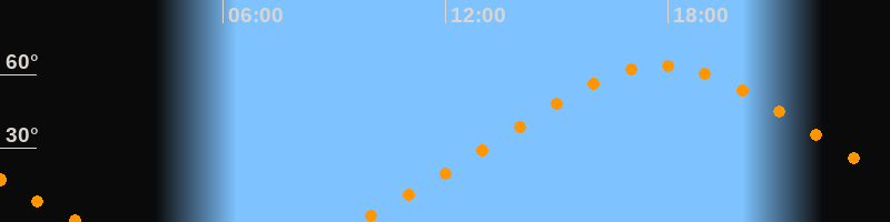 Höchster Stand (Kulmination)17:49 Uhr (h = 63,6°)