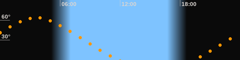 Aufgang19:14 Uhr im Nordosten (αAz = 48,4°)