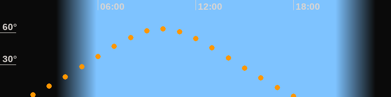 Höchster Stand (Kulmination)09:55 Uhr (h = 63,6°)