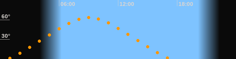 Höchster Stand (Kulmination)09:02 Uhr (h = 63,6°)