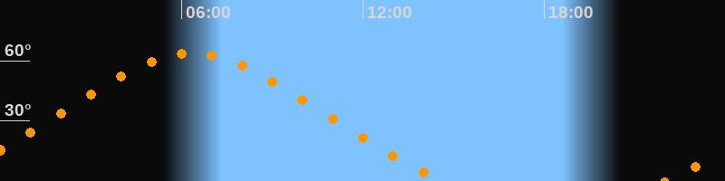 Höchster Stand (Kulmination)06:21 Uhr (h = 63,6°)