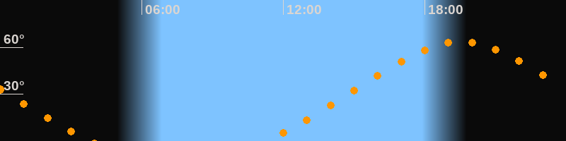 Höchster Stand (Kulmination)19:31 Uhr (h = 63,6°)