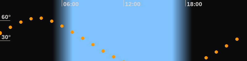 Aufgang19:14 Uhr im Nordosten (αAz = 48,4°)