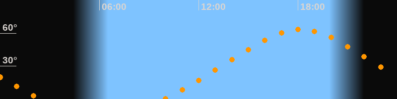 Höchster Stand (Kulmination)18:09 Uhr (h = 63,6°)