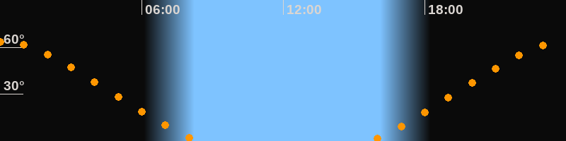 Höchster Stand (Kulmination)23:59 Uhr (h = 63,6°)
