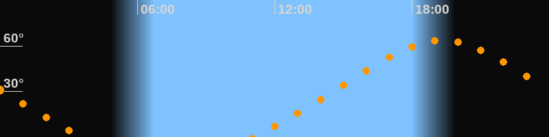 Höchster Stand (Kulmination)19:18 Uhr (h = 63,6°)