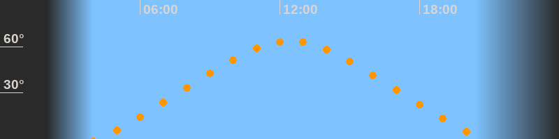 Höchster Stand (Kulmination)12:25 Uhr (h = 63,6°)