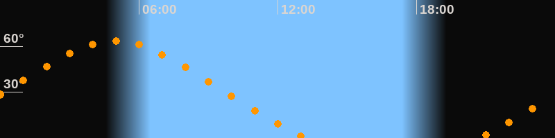 Höchster Stand (Kulmination)04:57 Uhr (h = 63,6°)