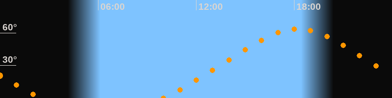 Höchster Stand (Kulmination)18:12 Uhr (h = 63,6°)