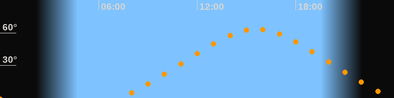 Höchster Stand (Kulmination)15:35 Uhr (h = 63,6°)