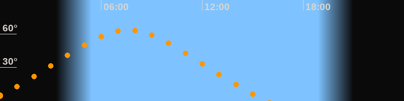 Höchster Stand (Kulmination)07:35 Uhr (h = 63,6°)