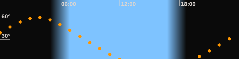Höchster Stand (Kulmination)03:43 Uhr (h = 63,6°)