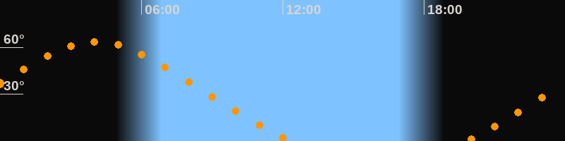 Höchster Stand (Kulmination)04:04 Uhr (h = 63,6°)