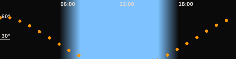 Höchster Stand (Kulmination)00:24 Uhr (h = 63,6°)