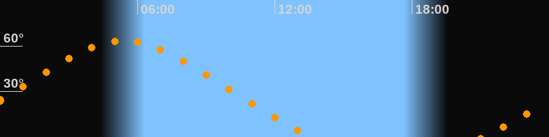 Höchster Stand (Kulmination)05:24 Uhr (h = 63,6°)