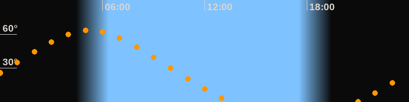 Höchster Stand (Kulmination)05:14 Uhr (h = 63,6°)