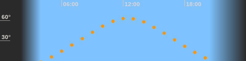Höchster Stand (Kulmination)12:24 Uhr (h = 63,6°)