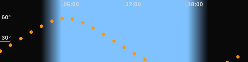 Höchster Stand (Kulmination)06:19 Uhr (h = 63,6°)