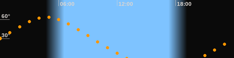 Höchster Stand (Kulmination)04:44 Uhr (h = 63,6°)